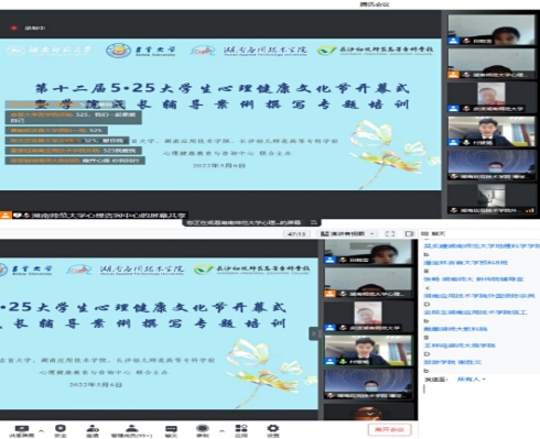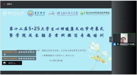5月6日下午,我校及对口协作学校吉首大学、湖南应用技术学院、长沙幼儿高等师范学校第十二届“5·25大学生心理健康文化节”开幕式暨学院成长辅导案例撰写专题培训于腾讯会议召开。我校学生工作部(处)部(处)长向发意宣布第十二届“5·25大学生心理健康文化节”开幕,并介绍了我校心理健康教育工作的开展情况和取得的成效,以及本次文化节的主题、内容和形式。