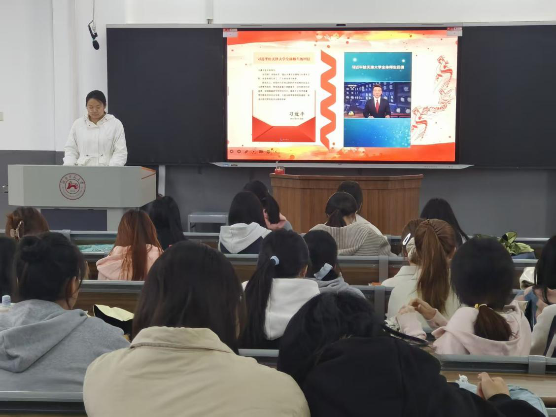 (通讯员 王俊楠 樊依冰 邓婷芳)10月21日中午,我院文法系团学两会与2023级汉语言文学一班、二班在树达楼515教室开展以“学习习近平总书记给天津大学全体师生重要回信精神”为主题的团日活动宣讲会。宣讲会由文法系团总支组织部部长王俊楠主持。