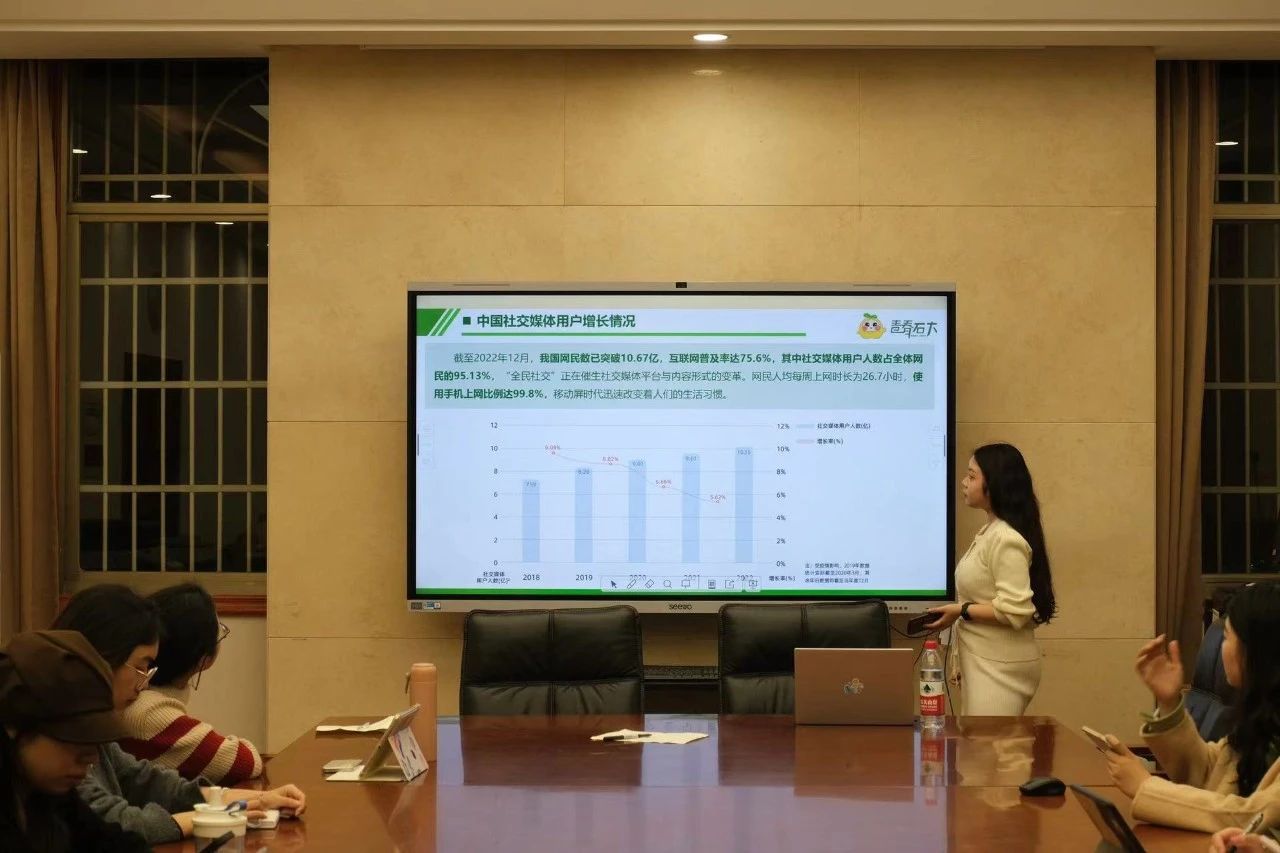 龙晨阳对本次会议进行总结:“身为新媒体工作室的一员,我们要持续提升自身的新媒体素养,为讲好师大故事、凝聚师大力量贡献自己的智慧与力量。”
