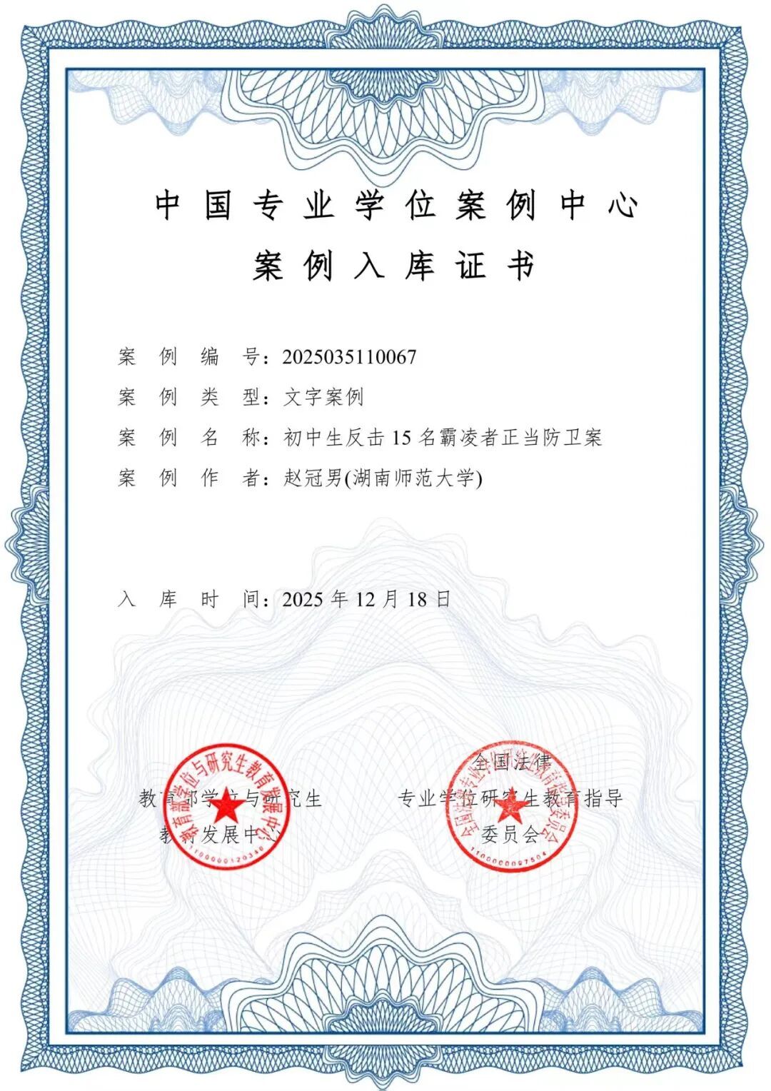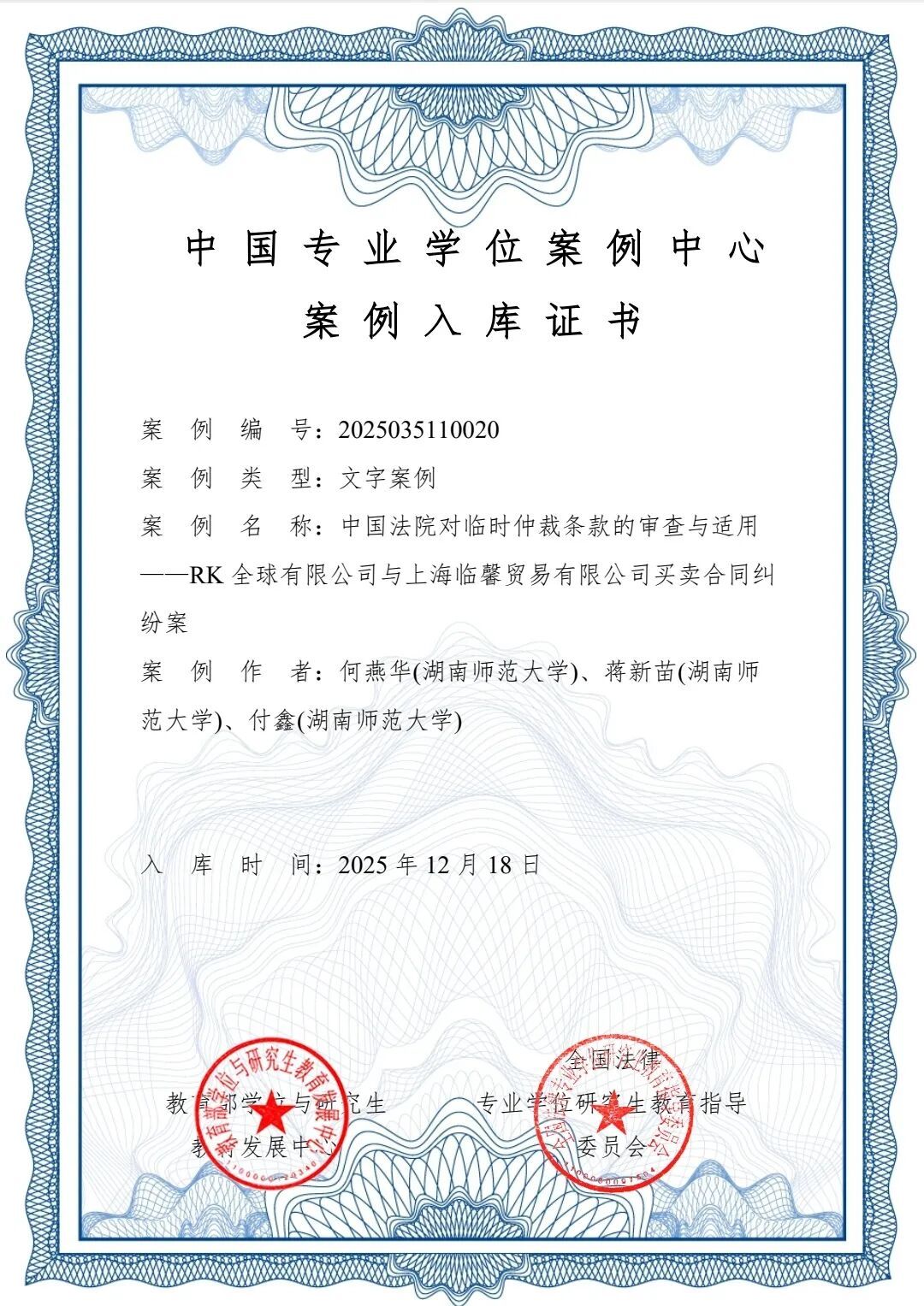 本次案例征集吸引全国152个单位参与申报,经全国法律教指委严格评审、教育部学位与研究生教育发展中心核查,最终遴选出241个优秀案例入选。法学院何燕华副教授团队撰写的《中国法院对临时仲裁条款的审查与适用—RK全球有限公司与上海临馨贸易有限公司买卖合同纠纷案》、赵冠男副教授撰写的《初中生反击15名霸凌者正当防卫案》成功入选,彰显了我校法学院专业学位案例教学的过硬实力。