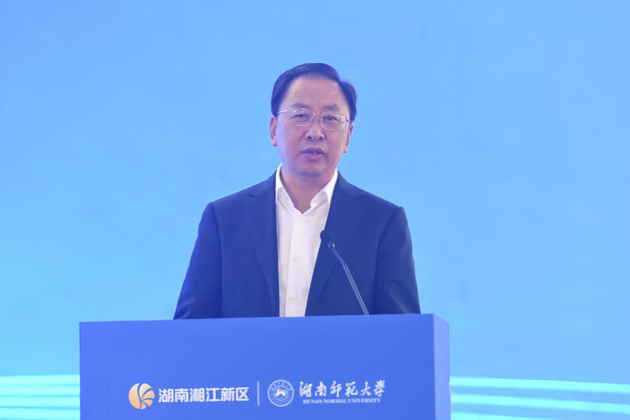 谭勇代表长沙市委、市政府和湘江新区党工委、管委会对项目开工表示热烈祝贺。他指出,湖南师范大学科创港校区建设,是落实习近平总书记考察湖南重要讲话精神的生动实践,是省、市、新区推进教育、科技、人才一体化发展、建设具有核心竞争力的科创高地的有力支撑,也是湖南师范大学推进“双一流”高校建设的核心承载,该项目一头连接国家“两重”资金支持,一头连接湘江科学城万亿级产业集群。他希望,湖南师范大学以“开工即决战、起步即冲刺”的奋进姿态,发挥自身优势,构建“校区—园区—城区”三位一体、学研产城深度融合的创新生态,为湘江新区抢占量子科技、人工智能、生命健康等未来产业制高点提供硬核支撑,为全市全省推动高质量发展、实现“三高四新”美好蓝图贡献更多智慧和力量。他表示,长沙市、湘江新区为项目建设开启“绿色通道”,提供全方位服务保障,将湖南师范大学科创港校区打造为湘江科学城片区的标志性、引领性项目。