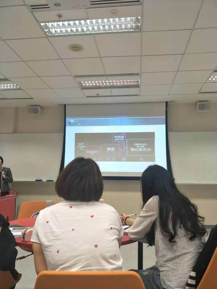 李老师正在向我们介绍本届学生会组成成员,并向我们介绍了学生会在学校的一些职能职责。