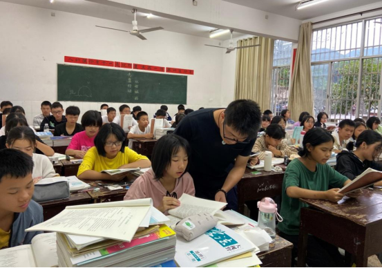 2020年8月底,湖南师范大学研究生支教团积极响应国家号召,赴湖南省绥宁县一中扶贫支教。执一支粉笔站三尺讲台,用一年时光酿终身不忘。从清晨到日暮,课内课外,孜孜不倦。图为支教团教师辅导学生功课。(文:张齐丹 图:贾钰竹)