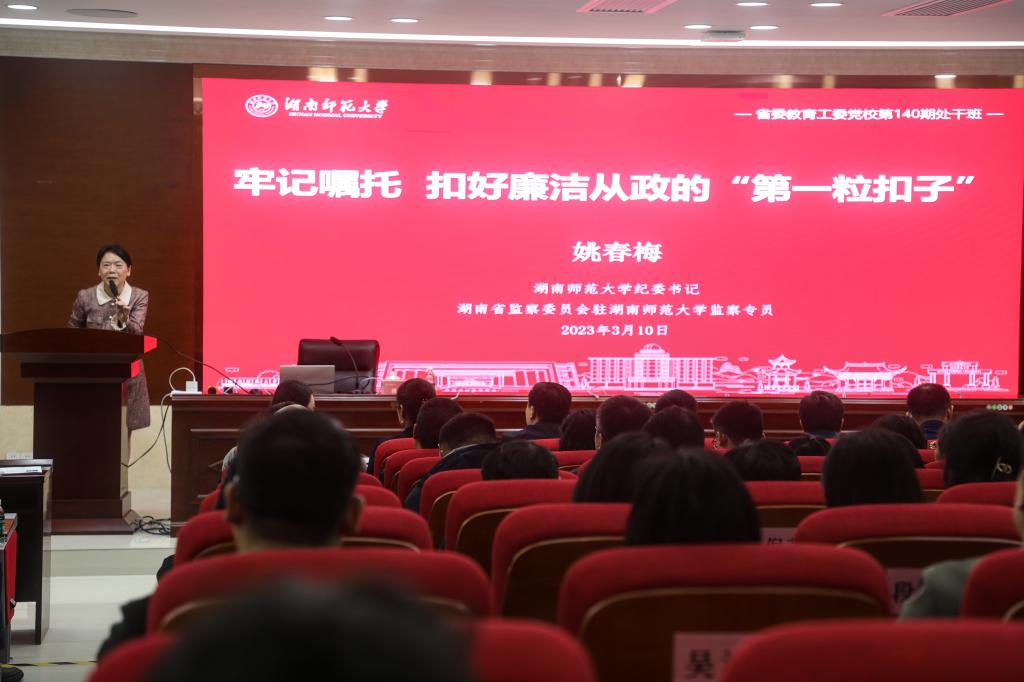 (记者 盛文馨 罗布)3月10日下午,校纪委书记、监察专员姚春梅在中和讲堂作题为“牢记嘱托,扣好廉洁行政第一粒扣子”的廉政专题讲座。会议由校纪委副书记、纪委办公室主任、监察专员办公室主任周勇主持。