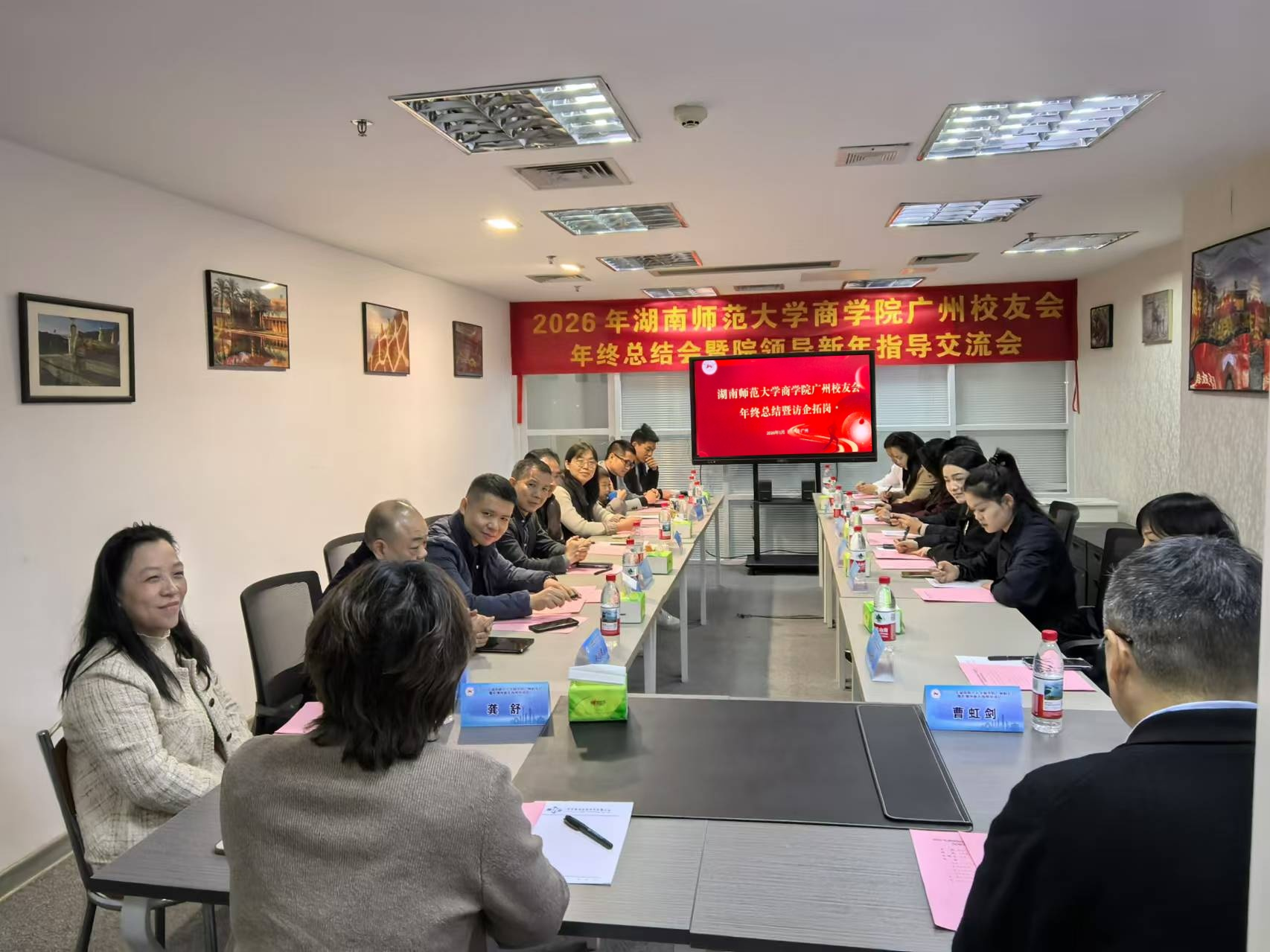 1月11日,我院党委书记龚舒一行赴广州,走进天翔教育科技(广东)有限公司,与商学院广州校友会部分成员举办了交流座谈会,龚舒表示校友是母校最宝贵的财富,诚挚邀请校友常回校参观交流,积极参与母校的人才培养、产学研合作等各项事业,与母校携手共进、共谋发展。副院长(主持工作)曹虹剑介绍了学校及学院“十四五”以来在学科建设、人才培养、科学研究等方面的成绩,“十五五”期间的规划愿景。校友们分享了各自的工作经历、职业发展现状及心得体会,并围绕校友会建设与换届工作、校友资源整合与共享、毕业生实习就业帮扶、校企合作模式创新等方面踊跃发言。