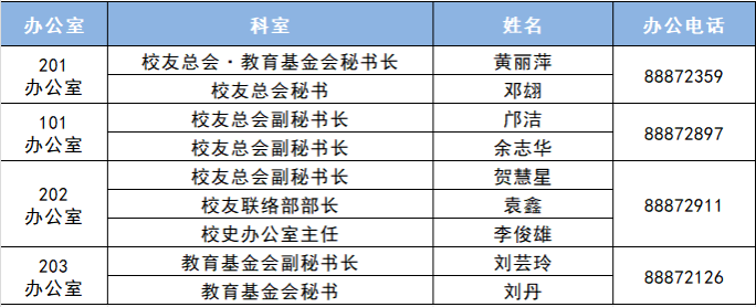 校友总会·教育基金会各办公室联系方式